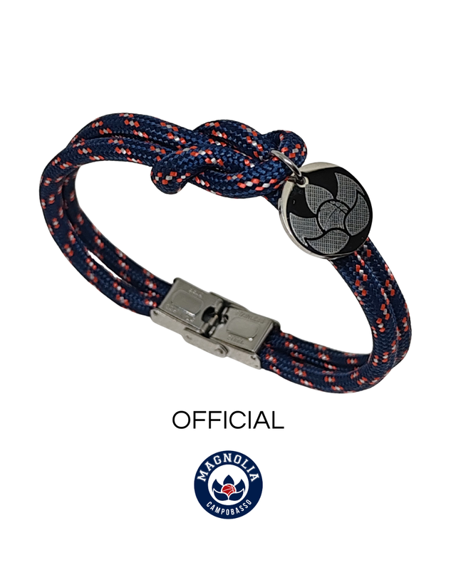BRACCIALE IN TESSUTO CON TRAMA ROSSO BLU E PENDENTE IN ACCIAIO CON INCISO SIMBOLO MAGNOLIA BASKET